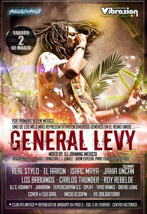 Es el 2 de Marzo del 2013 tendremos la oportunidad de presenciar el electrizante show e vivo de General Levy, vamos conquistados por el extraordinario talento de este artista.